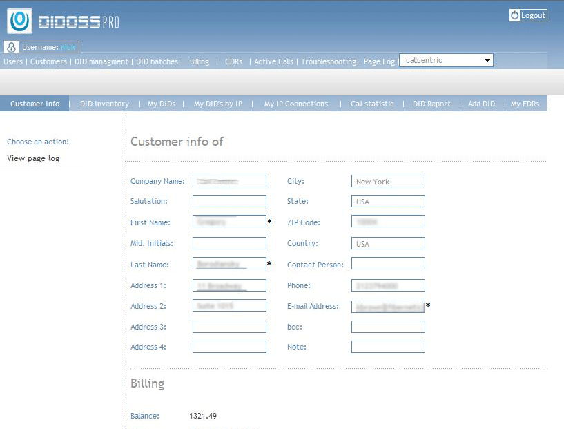 Design of DIDOSS allows automatic billing related to customer setup i.e. the customer is able to manage directly his needs by dynamically choosing and adjusting the number of DID and ports and thus to fit more accurately his busniess model needs. At the same time the customer gets charged automatically for each configuration change according to his product billing model. This way intervention of the service provider is not necessary.